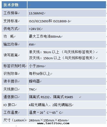 CL341长(cháng)距離读写器是一(yī)款增强型高(gāo)性(xìng)能電(diàn)子标(biāo)签(qiān)读写器,工作(zuò)頻率为(wèi)13.56MHz,分(fēn)为(wèi)射頻部(bù)分(fēn)和(hé)數字(zì)部(bù)分(fēn),內(nèi)部(bù)有(yǒu)一(yī)个(gè)存放(fàng)标(biāo)签(qiān)ID号(hào)的(de)緩存區(qū),可(kě)防止數據(jù)丢失,空(kōng)气(qì)接口(kǒu)執行ISO/IEC15693和(hé)ISO/IEC18000-3标(biāo)準。具有(yǒu)读写距離遠(yuǎn)、性(xìng)能穩定(dìng)、抗干(gàn)擾能力强等特(tè)點(diǎn),可(kě)廣泛用(yòng)于(yú)生(shēng)産自(zì)動(dòng)化(huà)、物(wù)品追蹤、資産管(guǎn)理(lǐ)、産品防僞、開(kāi)放(fàng)式门禁考勤等領域。