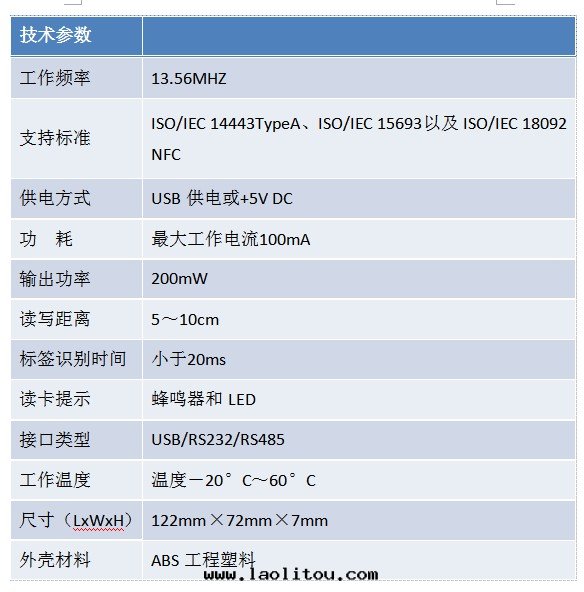 支持(chí)ISO/IEC 14443 A類(lèi)卡(kǎ)和(hé)ISO/IEC 15693卡(kǎ)、Mifare卡(kǎ)、FeliCa卡(kǎ)和(hé)全(quán)部(bù)4種(zhǒng)NFC(ISO/IEC 18092)标(biāo)签(qiān)