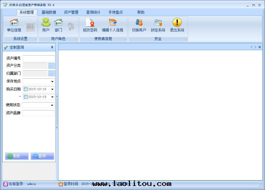 l 界面(miàn)左(zuǒ)邊(biān)为(wèi)資産信(xìn)息查詢条(tiáo)件(jiàn),分(fēn)为(wèi)定(dìng)制查詢和(hé)樹(shù)形查詢(即資産浏覽)。