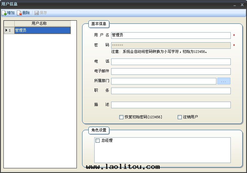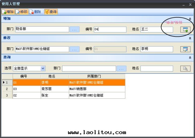使用(yòng)人(rén)管(guǎn)理(lǐ)的(de)界面(miàn)如(rú)下(xià)。在(zài)此(cǐ)界面(miàn)中(zhōng),可(kě)以(yǐ)增加、修改、删除和(hé)查詢使用(yòng)人(rén)信(xìn)息。