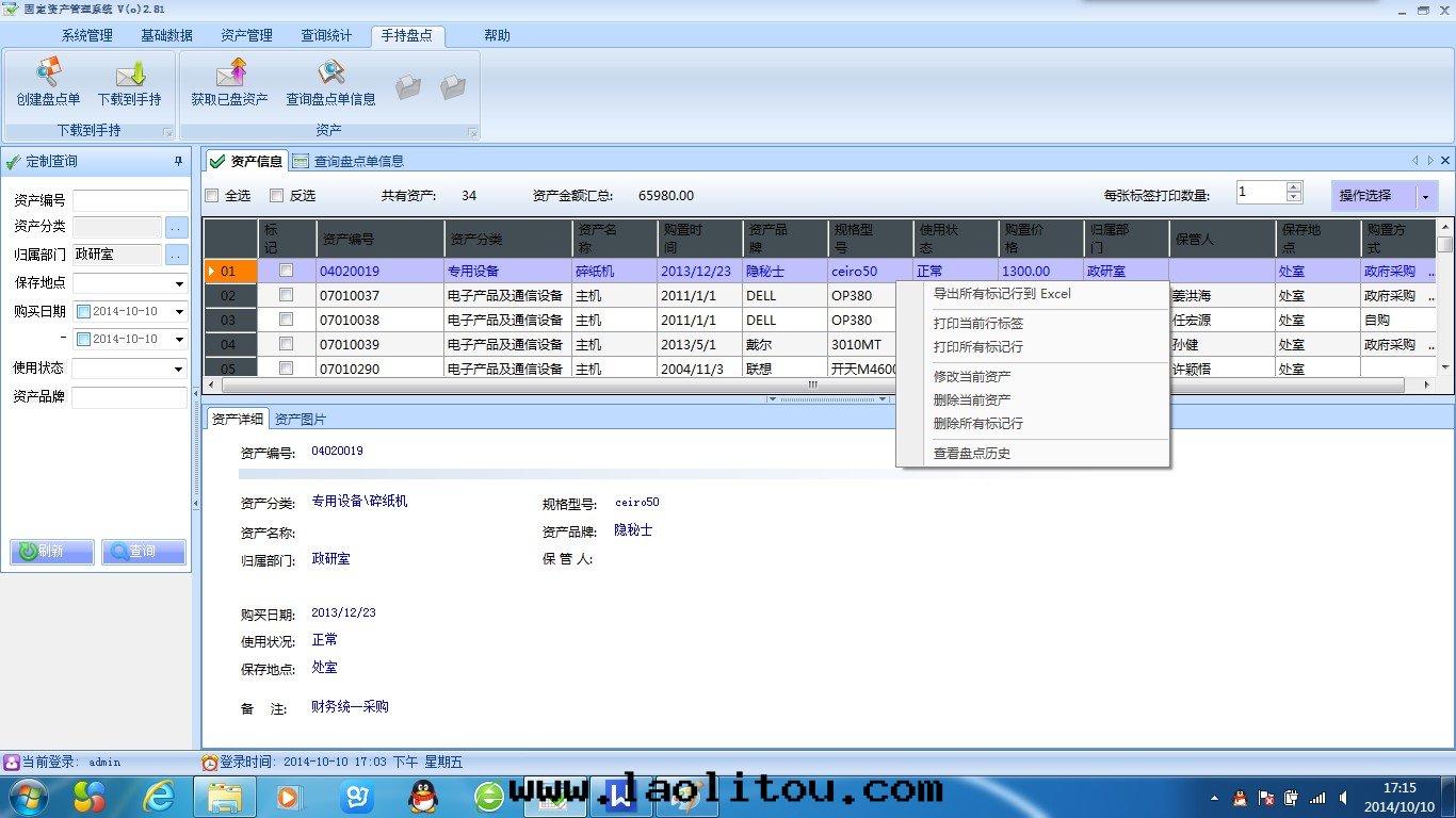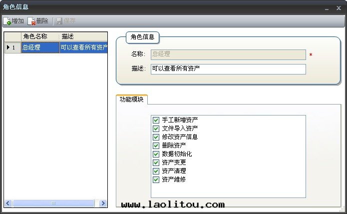 l 界面(miàn)右(yòu)邊(biān)为(wèi)資産明(míng)细(xì)信(xìn)息,並(bìng)可(kě)以(yǐ)对(duì)資産進(jìn)行增删改查等各(gè)種(zhǒng)操作(zuò)。
