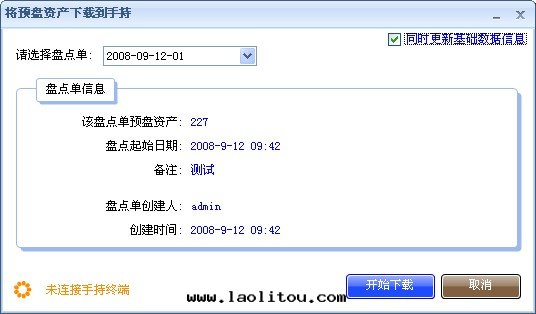 下(xià)载(zài)到(dào)手(shǒu)持(chí)表(biǎo)示将已經(jīng)創建的(de)盤點(diǎn)單數據(jù)複制到(dào)手(shǒu)持(chí)上(shàng)。