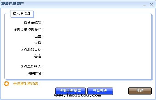 數據(jù)上(shàng)傳的(de)菜單是“手(shǒu)持(chí)盤點(diǎn)->獲取(qǔ)已盤資産”,界面(miàn)如(rú)下(xià):