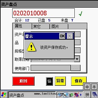 l 保存完成(chéng)後(hòu),系(xì)統自(zì)動(dòng)更(gèng)新(xīn)已盤數量(liàng)和(hé)未盤數量(liàng),将字(zì)體(tǐ)颜色(sè)改为(wèi)紅(hóng)色(sè),並(bìng)在(zài)資産編号(hào)旁邊(biān)做